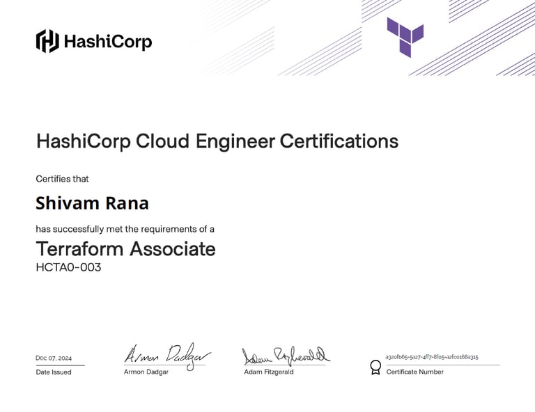 Discovering the Terraform certification presented the perfect opportunity to formalize my learning and validate my skills. To begin my preparation, I meticulously studied the official HashiCorp documentation and supplemented my learning with structured courses on YouTube (Link shared below). This comprehensive approach allowed me to solidify my knowledge and confidently pursue my certification goals.