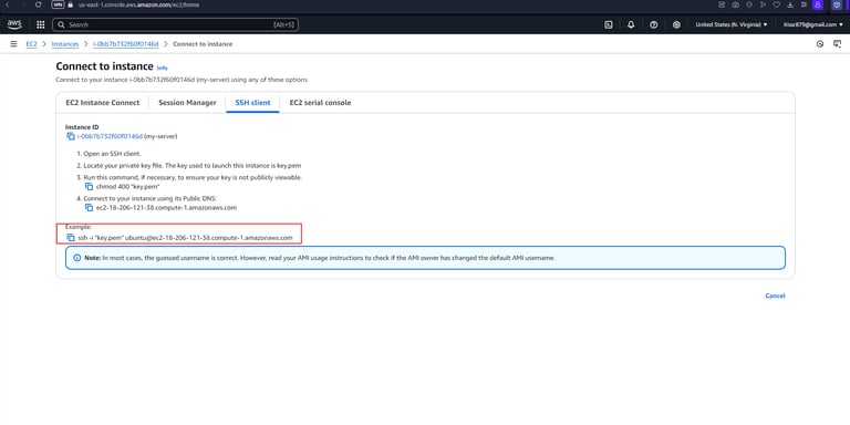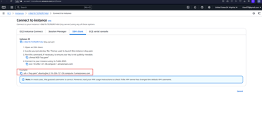 Login to the Ec2 server using ssh command ssh -i "key.pem" ubuntu@ec2-12-206-121-38.compute-1.amazonaws.com