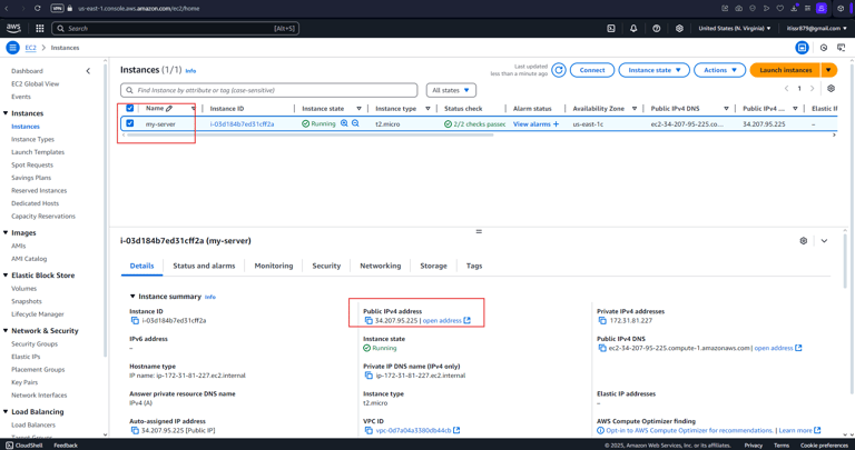 Grab the public Ip v4 address (34.207.95.225) of the AWS EC2 and paste it in browser and the website should be accessible.